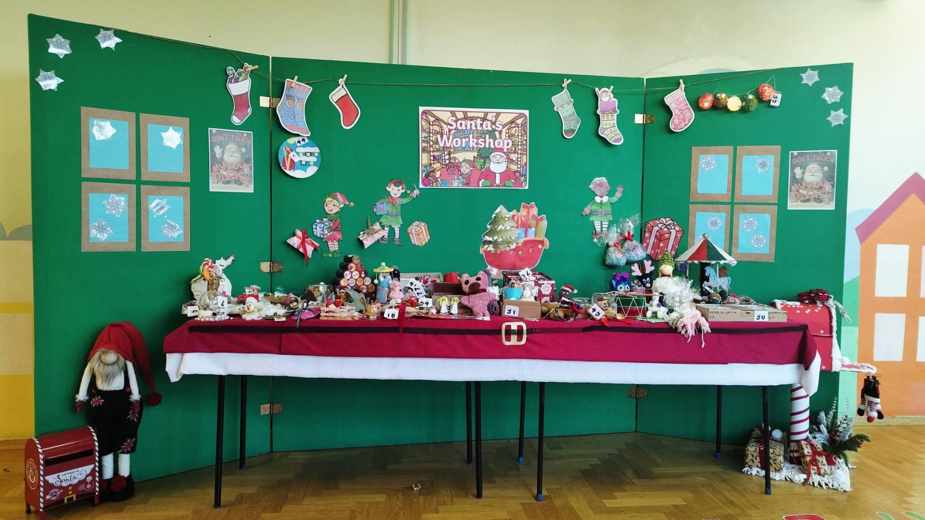 W grudniu w naszej szkole odbył się konkurs plastyczno-techniczny „Santa’s Workshop”, skierowany do uczniów klas 1–3. Konkurs został zorganizowany przez nauczycieli języka angielskiego: Jakuba Kamińskiego, Justynę Patok oraz Joannę Kisiołek. Zadaniem uczestników było przygotowanie zabawki lub dekoracji, która mogłaby znaleźć się w warsztacie Świętego Mikołaja i zostać zapakowana przez elfy jako prezent dla dzieci. Wszystkie prace – a było ich aż 60 – zachwycały pomysłowością, kreatywnością i starannością wykonania. Przez cały grudzień można je było podziwiać na szkolnym korytarzu, gdzie cieszyły się ogromnym zainteresowaniem uczniów. Dodatkowo uczniowie klas 1–3 podczas lekcji języka angielskiego głosowali na swoje ulubione prace, wybierając zwycięzców konkursu.