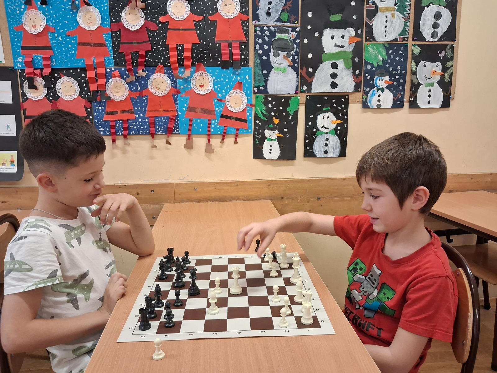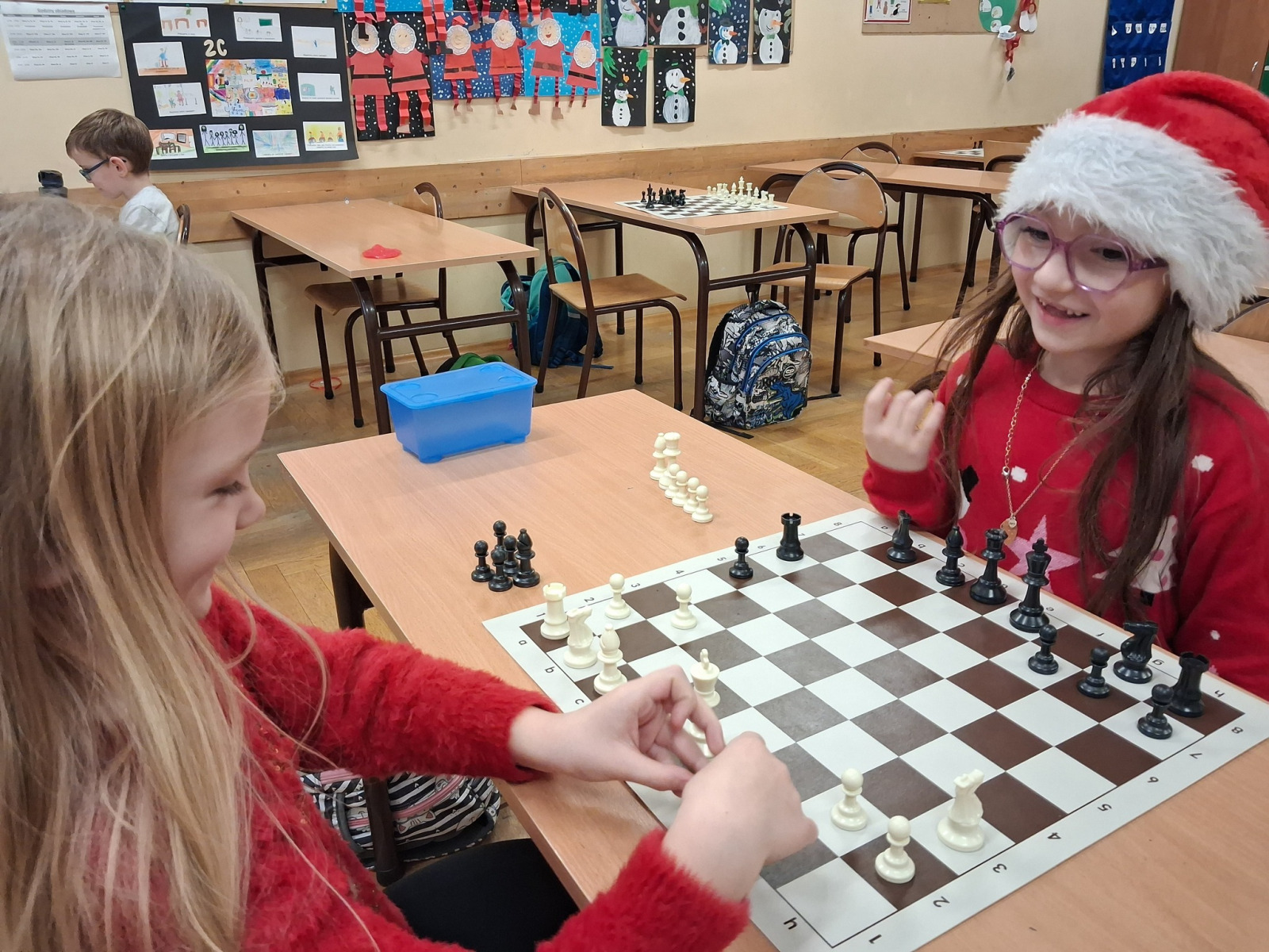 Piątkowe popołudnie dostarczyło uczniom klasy 1a wielu emocji. Na początek czekała na nich miła niespodzianka – mikołajkowe prezenty. Następnie atmosfera zrobiła się jeszcze gorętsza za sprawą szachowych potyczek.