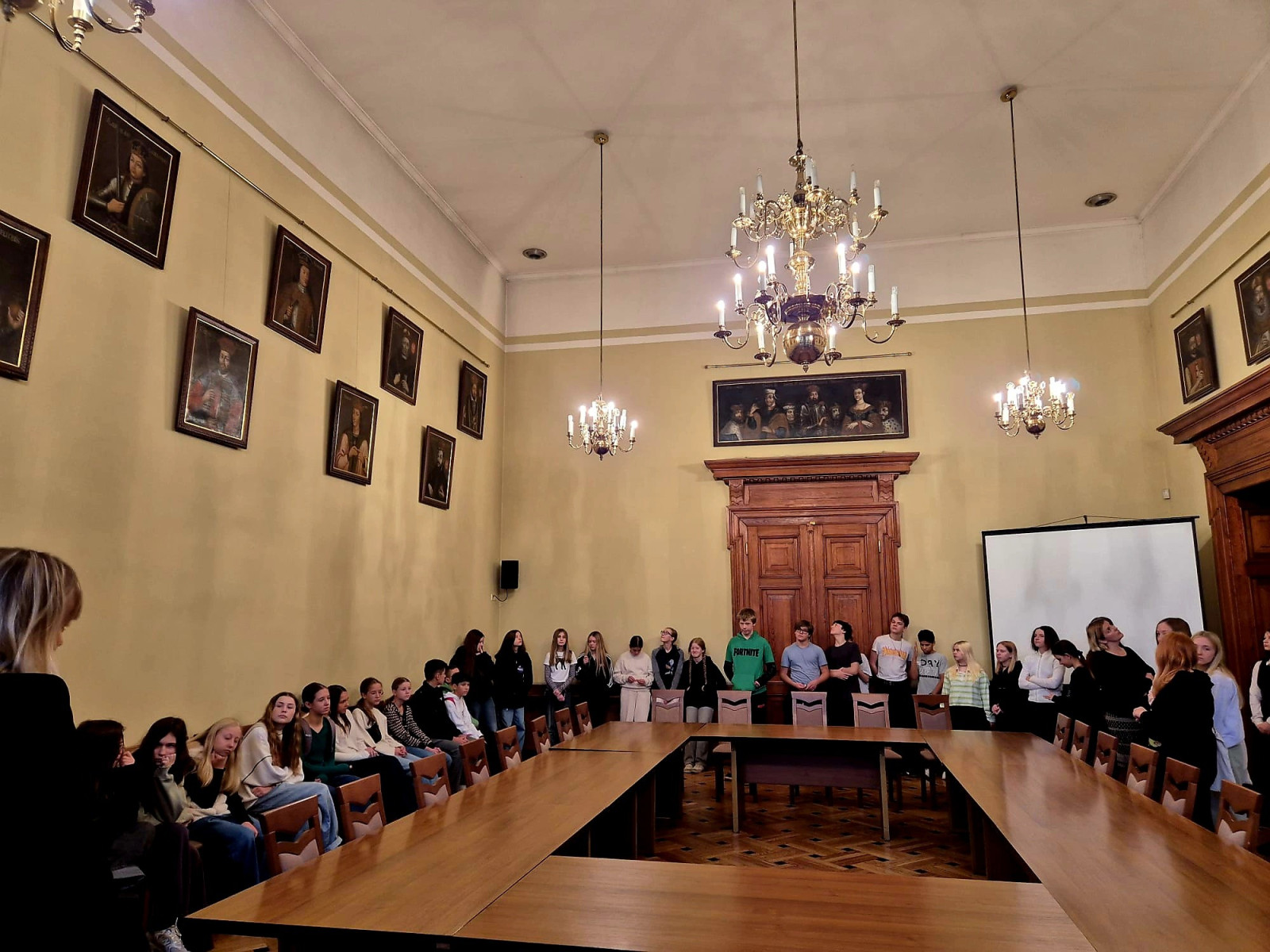Podczas spotkania młodzież miała okazję poznać historię krakowskiego samorządu, jego strukturę oraz zadania, jakie na co dzień realizują władze miasta. Uczniowie zwiedzili również salę obrad Rady Miasta Krakowa i dowiedzieli się, jak wygląda praca radnych i prezydenta miasta od kulis.