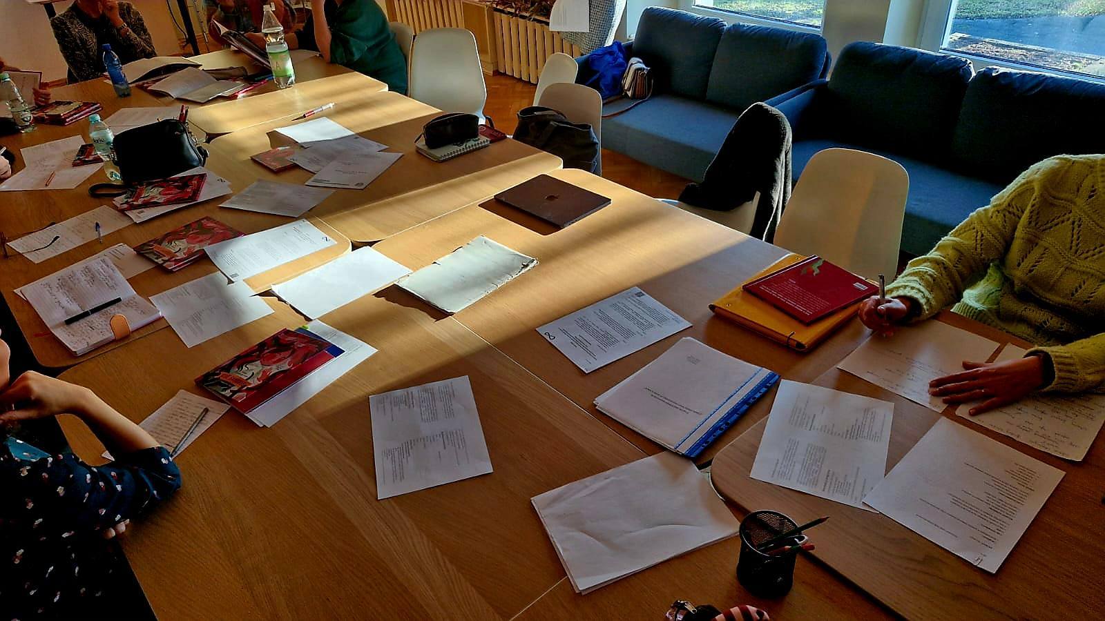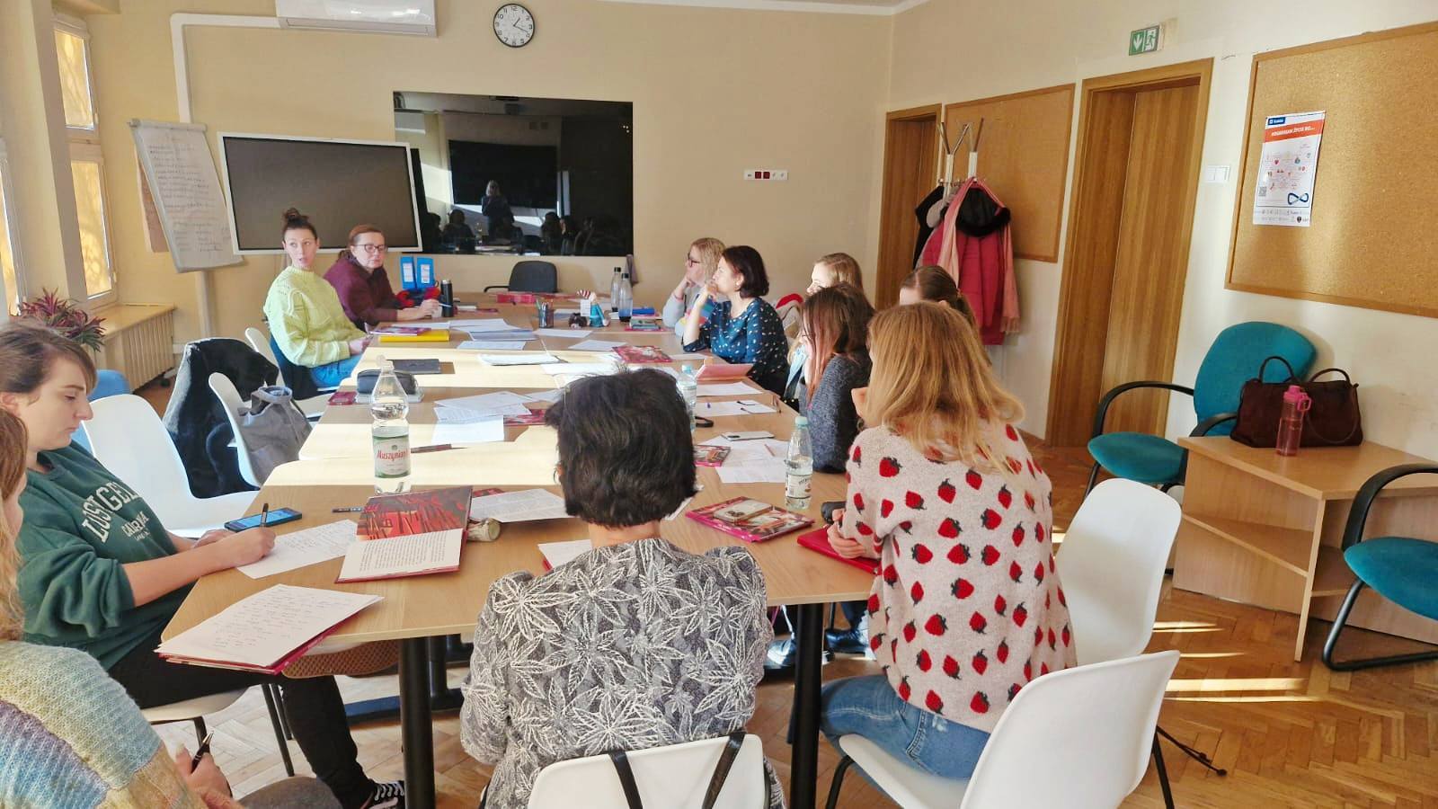 Podczas dzisiejszych warsztatów uczestnicy skupili się na tworzeniu scenariusza zajęć, inspirowanego fragmentami książki Roksany Jędrzejewskiej-Wróbel pt. „Kije samobije”. Rozmowy i wspólna praca stały się okazją do refleksji nad emocjami, relacjami i sposobami radzenia sobie z trudnymi sytuacjami.