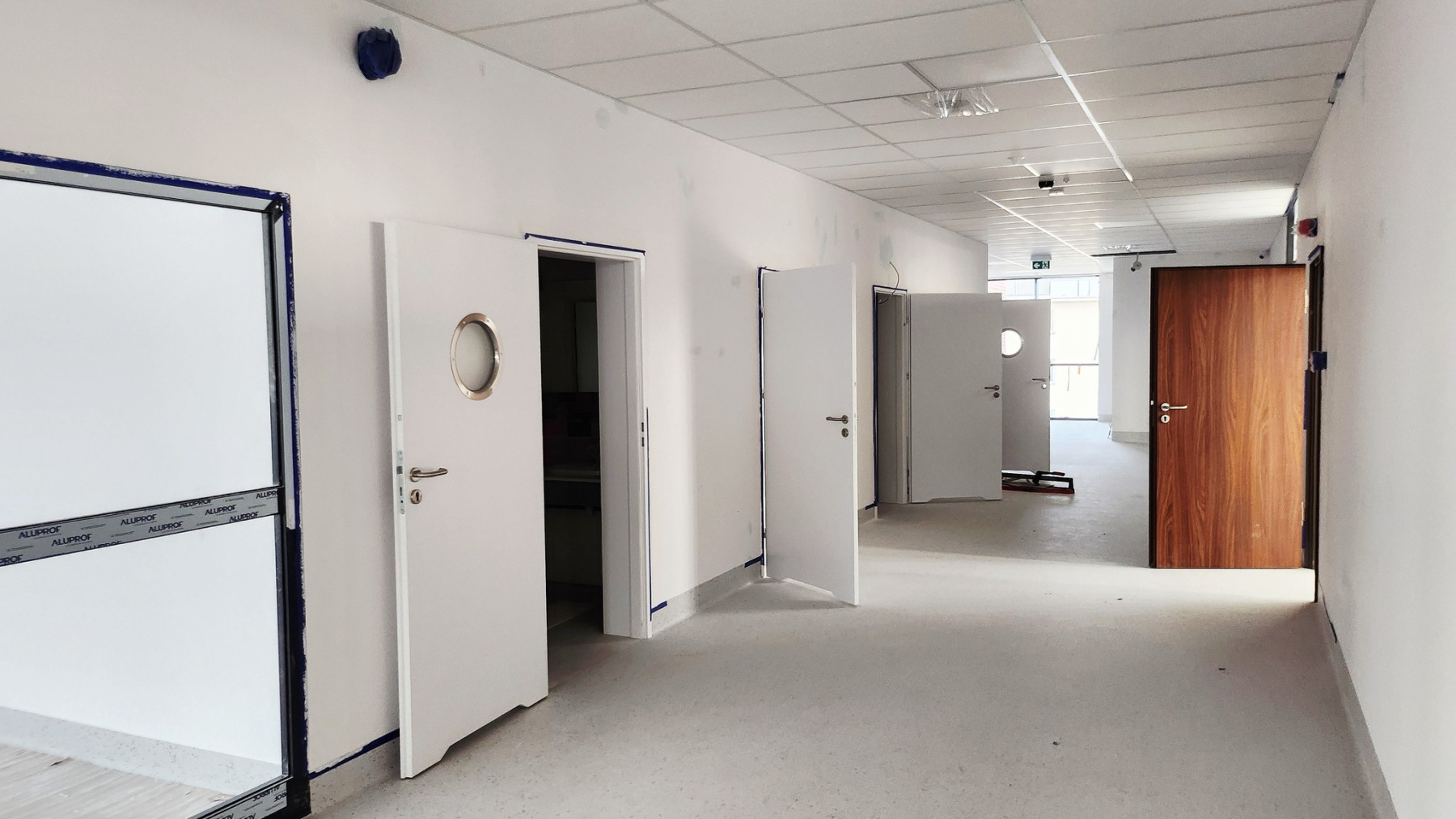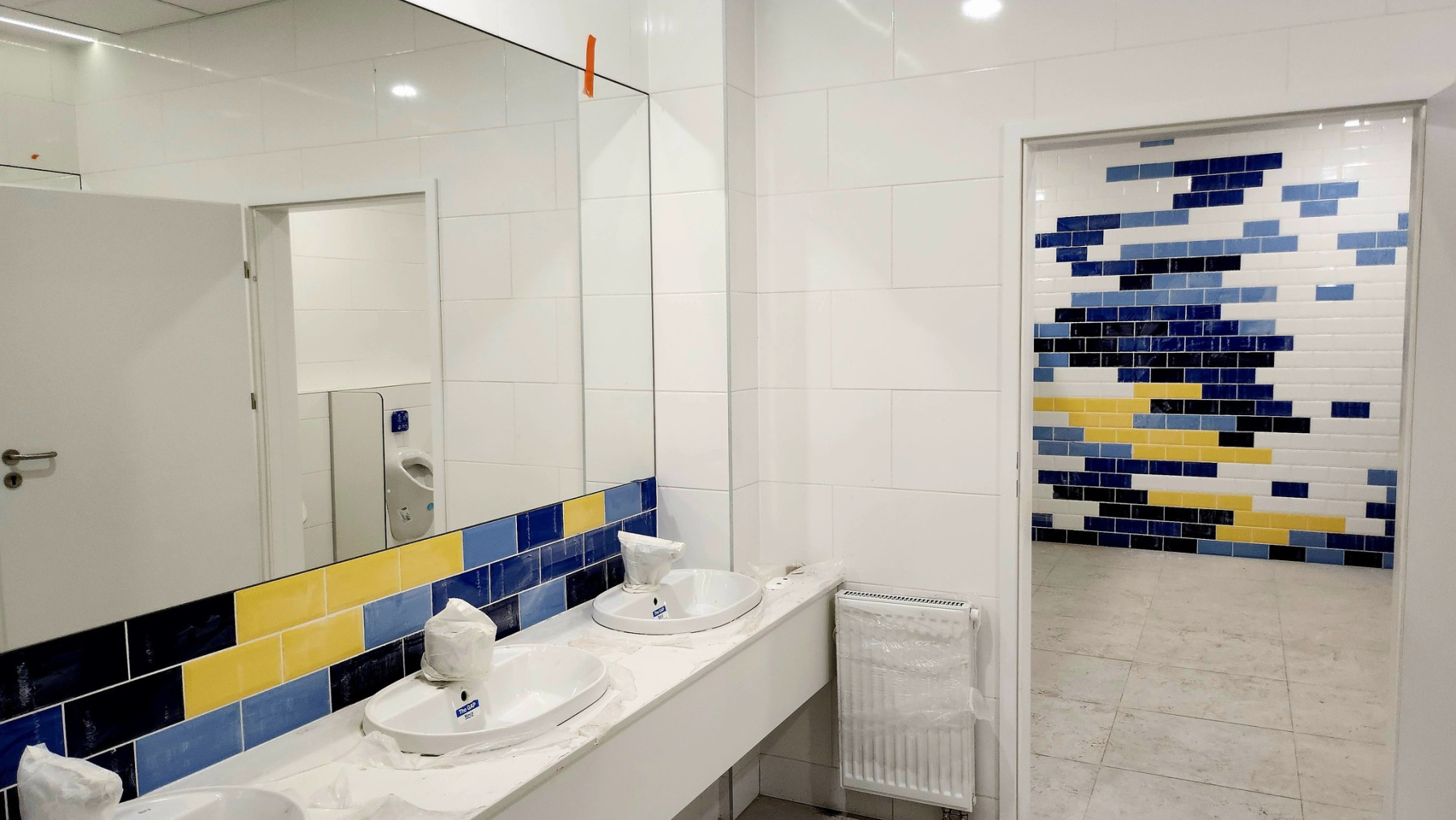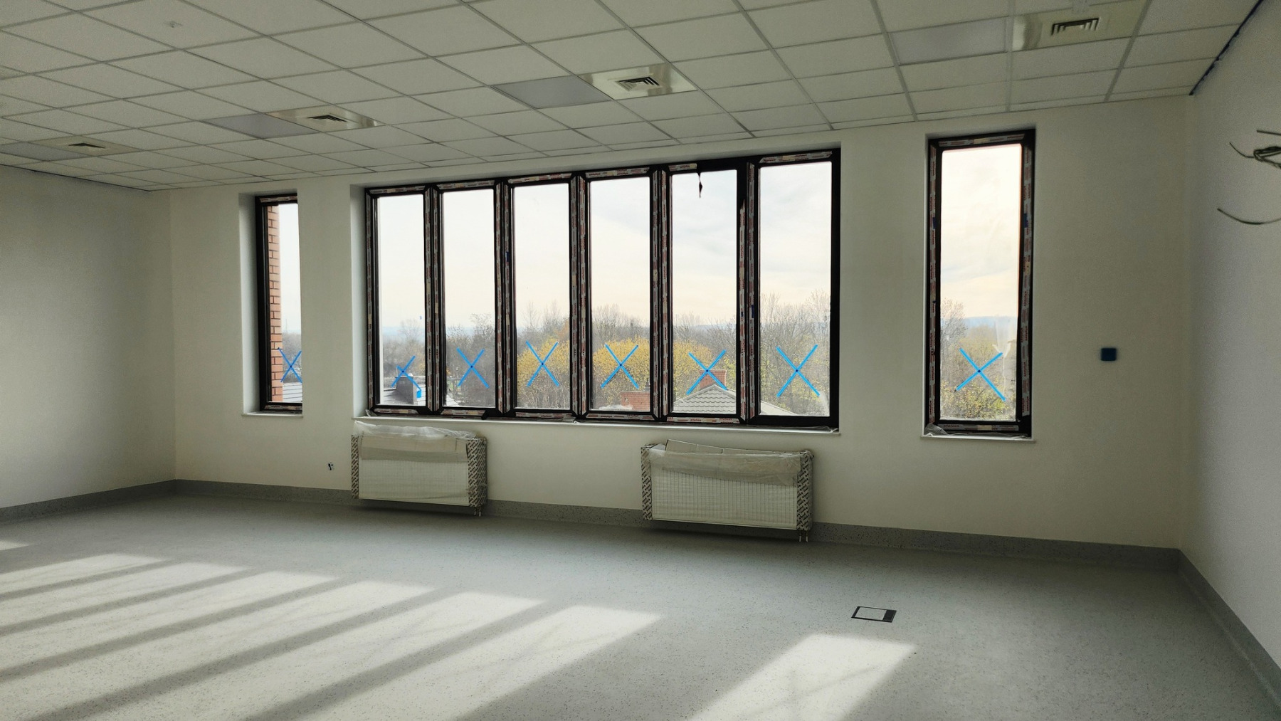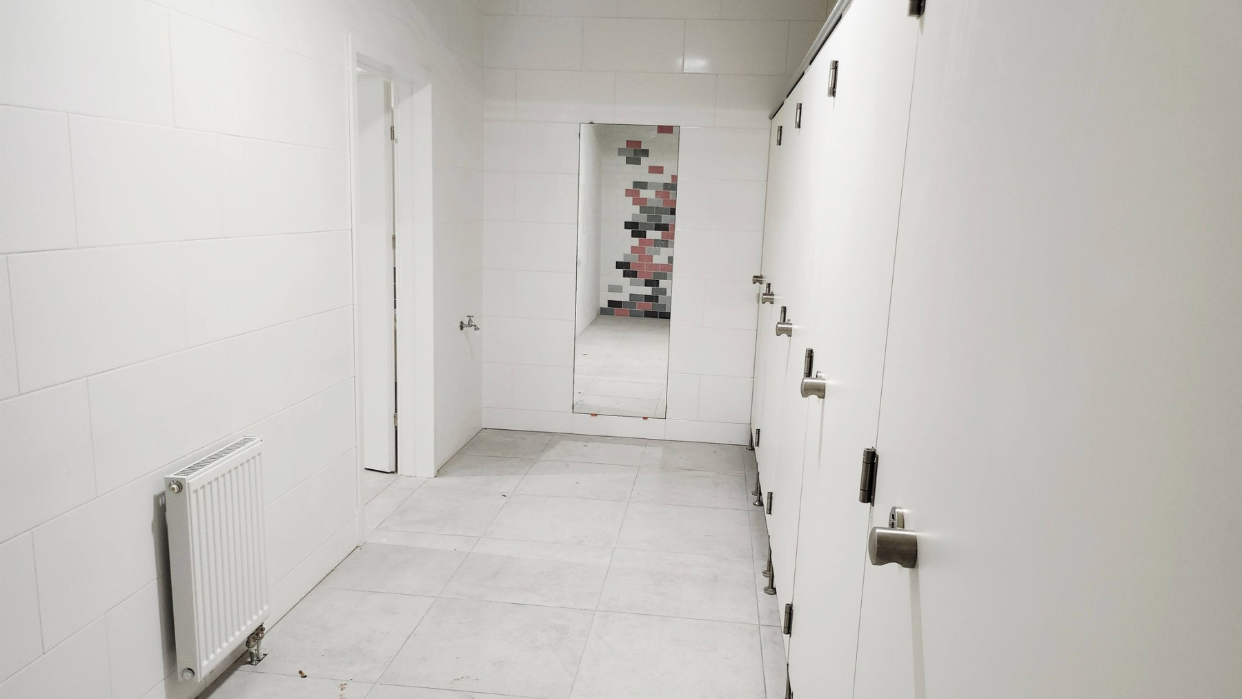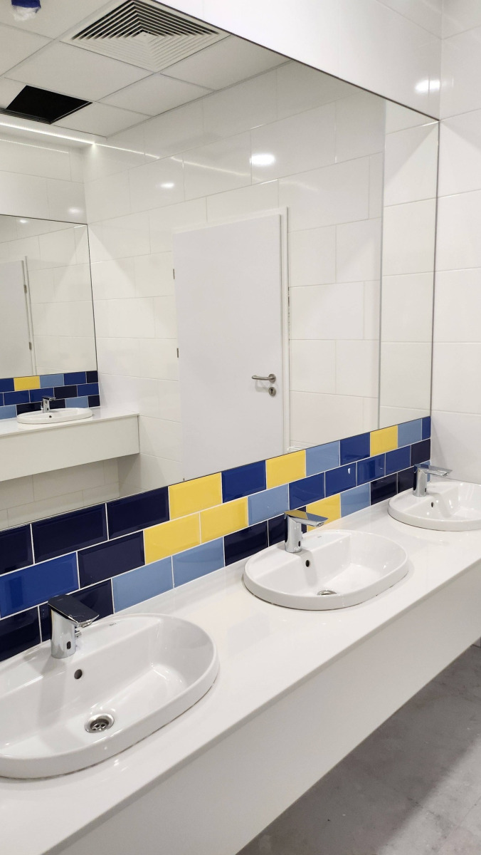 Dzisiejsza wizyta na budowie przyniosła nam wiele radości – z każdym krokiem widać, jak nasza nowa szkoła pięknieje. Na sali gimnastycznej pojawiły się już starannie wymalowane linie do gier zespołowych, a wokół trwają intensywne prace wykończeniowe.