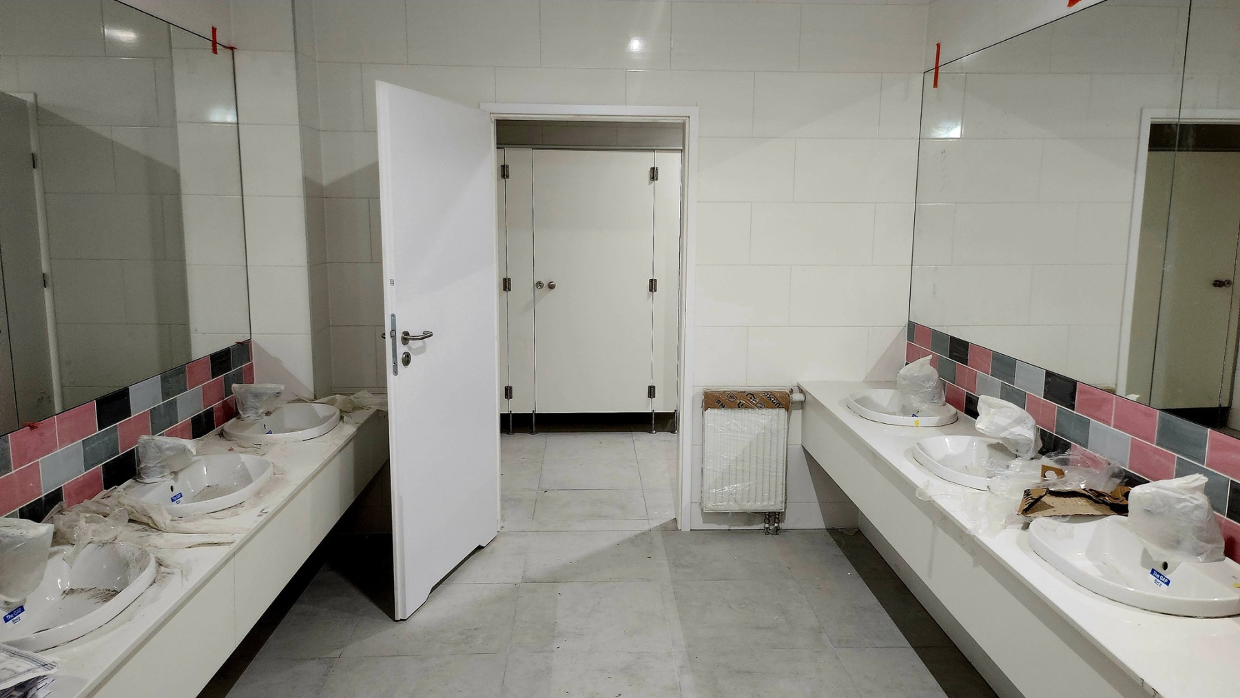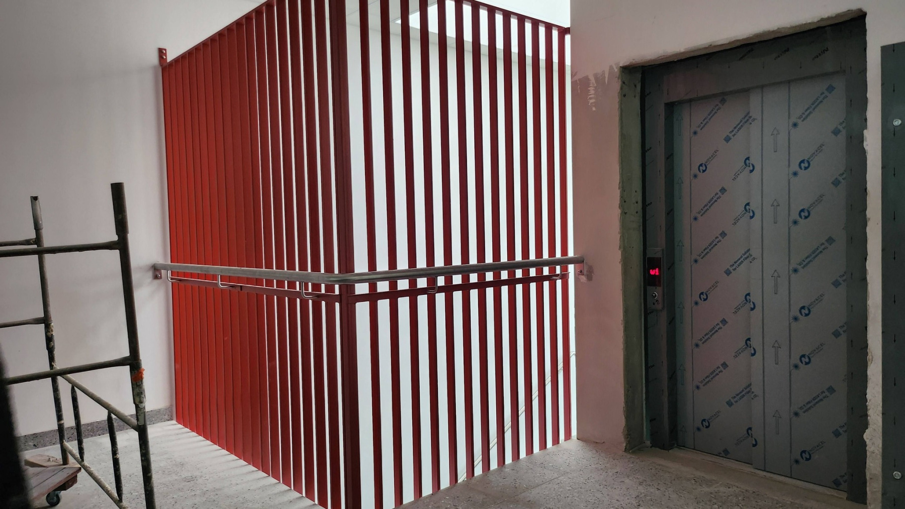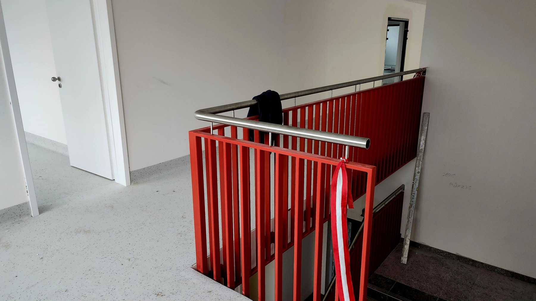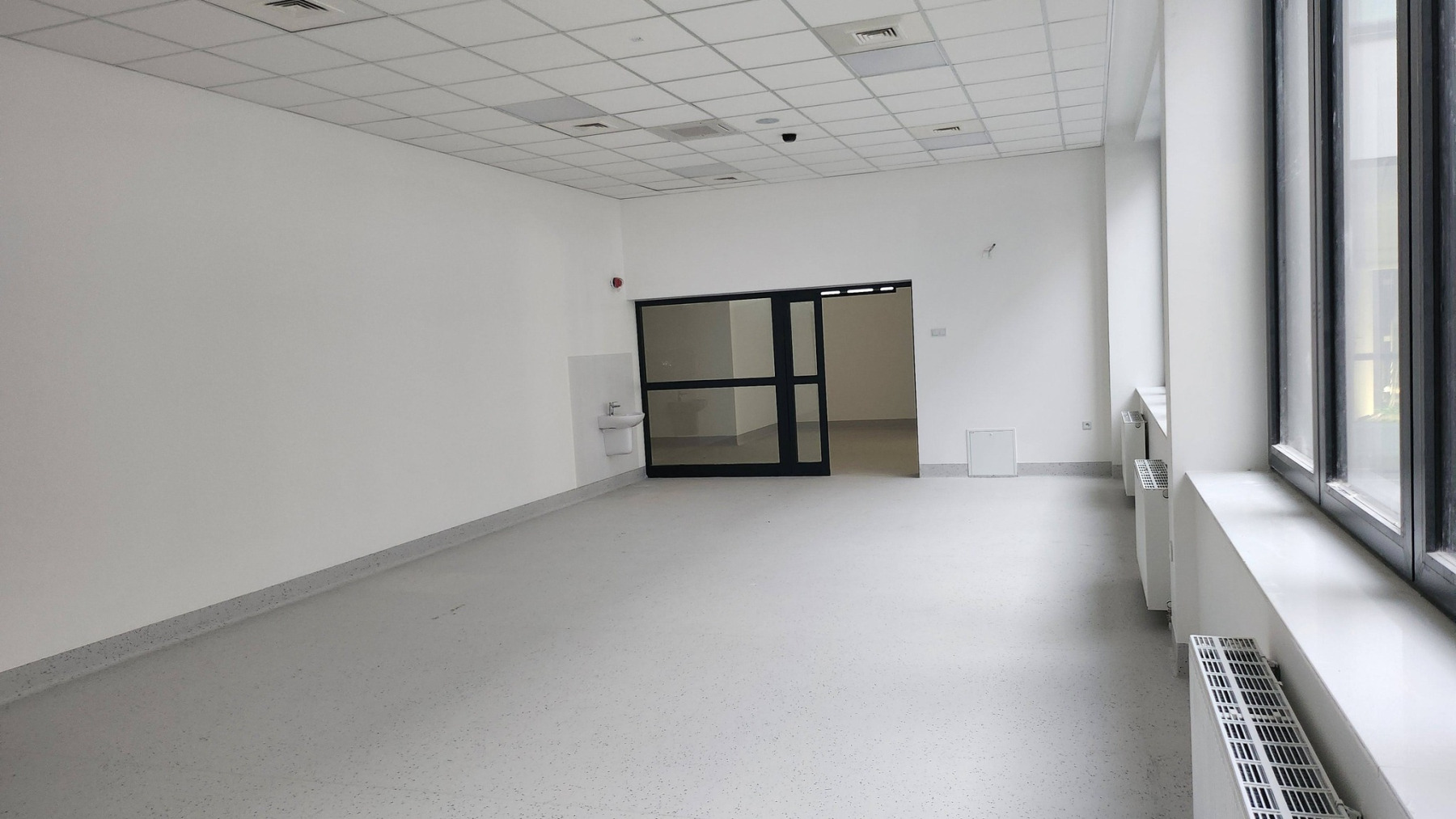 Dzisiejsza wizyta na budowie przyniosła nam wiele radości – z każdym krokiem widać, jak nasza nowa szkoła pięknieje. Na sali gimnastycznej pojawiły się już starannie wymalowane linie do gier zespołowych, a wokół trwają intensywne prace wykończeniowe.