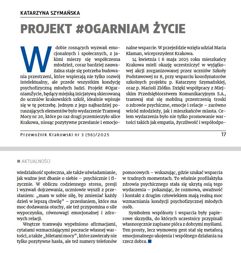 Za nami już trzecia edycja wyjątkowej inicjatywy, jaką jest „Tramwaj Mocy” – wydarzenie, którego celem jest promowanie troski o zdrowie psychiczne, budowanie świadomości emocjonalnej oraz wspieranie uczniów i społeczności w codziennych wyzwaniach.