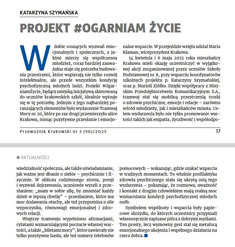 Za nami już trzecia edycja wyjątkowej inicjatywy, jaką jest „Tramwaj Mocy” – wydarzenie, którego celem jest promowanie troski o zdrowie psychiczne, budowanie świadomości emocjonalnej oraz wspieranie uczniów i społeczności w codziennych wyzwaniach.