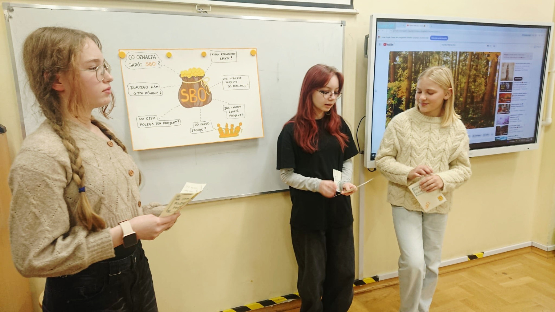 W tym tygodniu kilka osób z naszego Zespołu Koordynującego rozpoczęło szkolną kampanię promującą Szkolny Budżet Obywatelski. Zaszczyt i przyjemność opowiadania o SBO miały: Zuzanna Lasota, Julia Michałek, Łucja Skóra oraz Anna Pacyna .