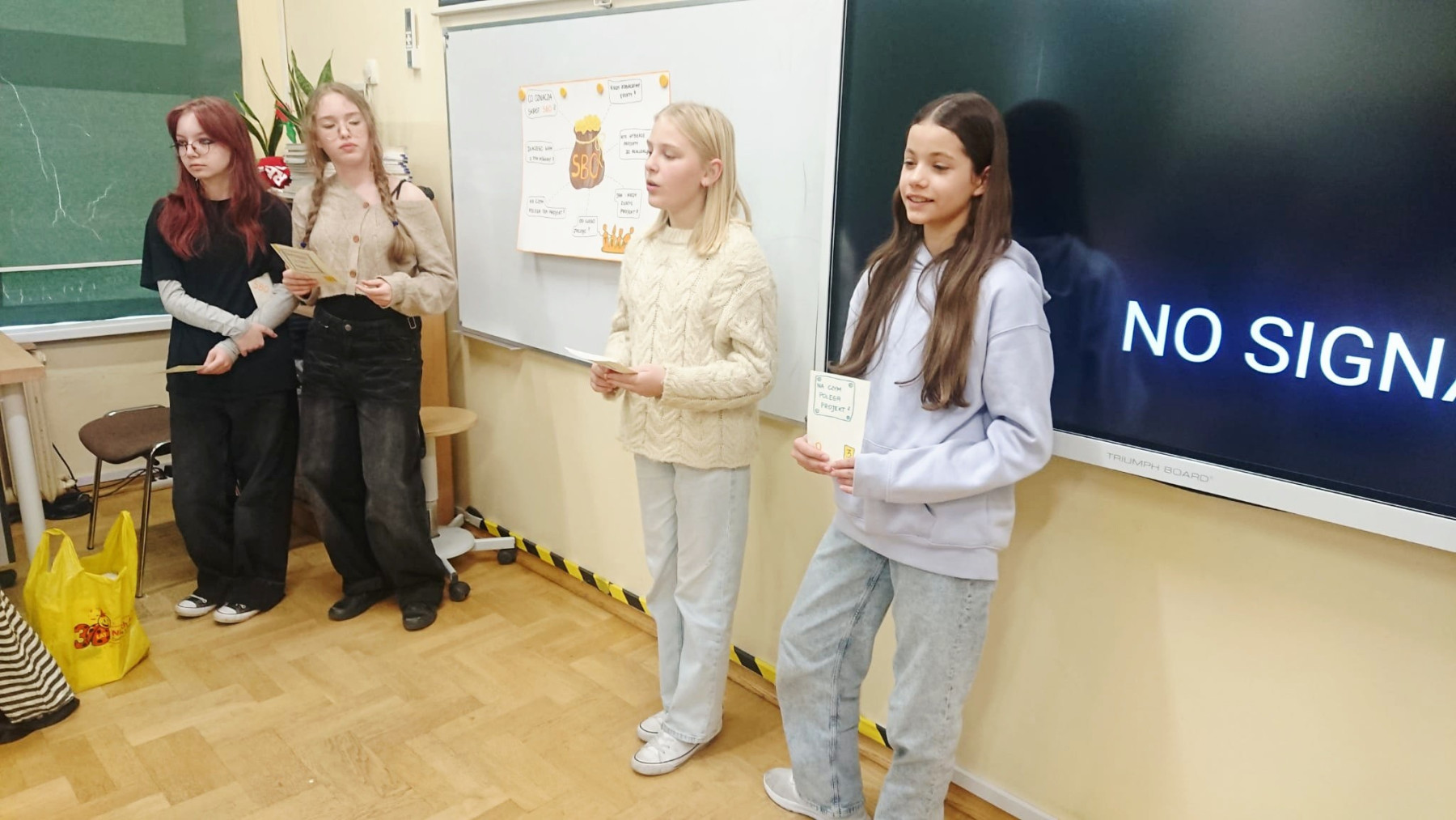 Po warsztatach, wielu rozmowach i spotkaniach ruszyliśmy pełną parą! Na drzwiach sali numer 16 pojawił się tajemniczy napis „SBO”, który wzbudził wśród uczniów sporo ciekawości. Pomysłów na rozwinięcie skrótu było mnóstwo, dlatego postanowiliśmy nie trzymać Was dłużej w niepewności.