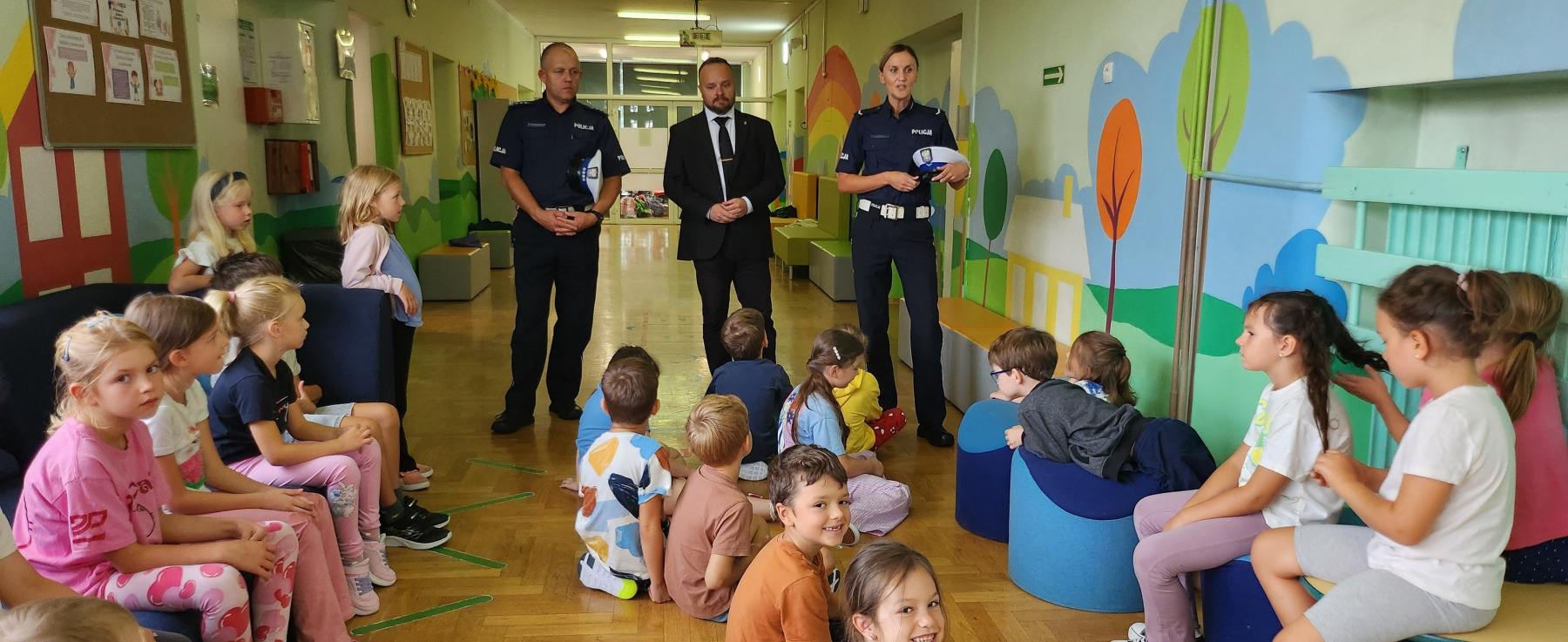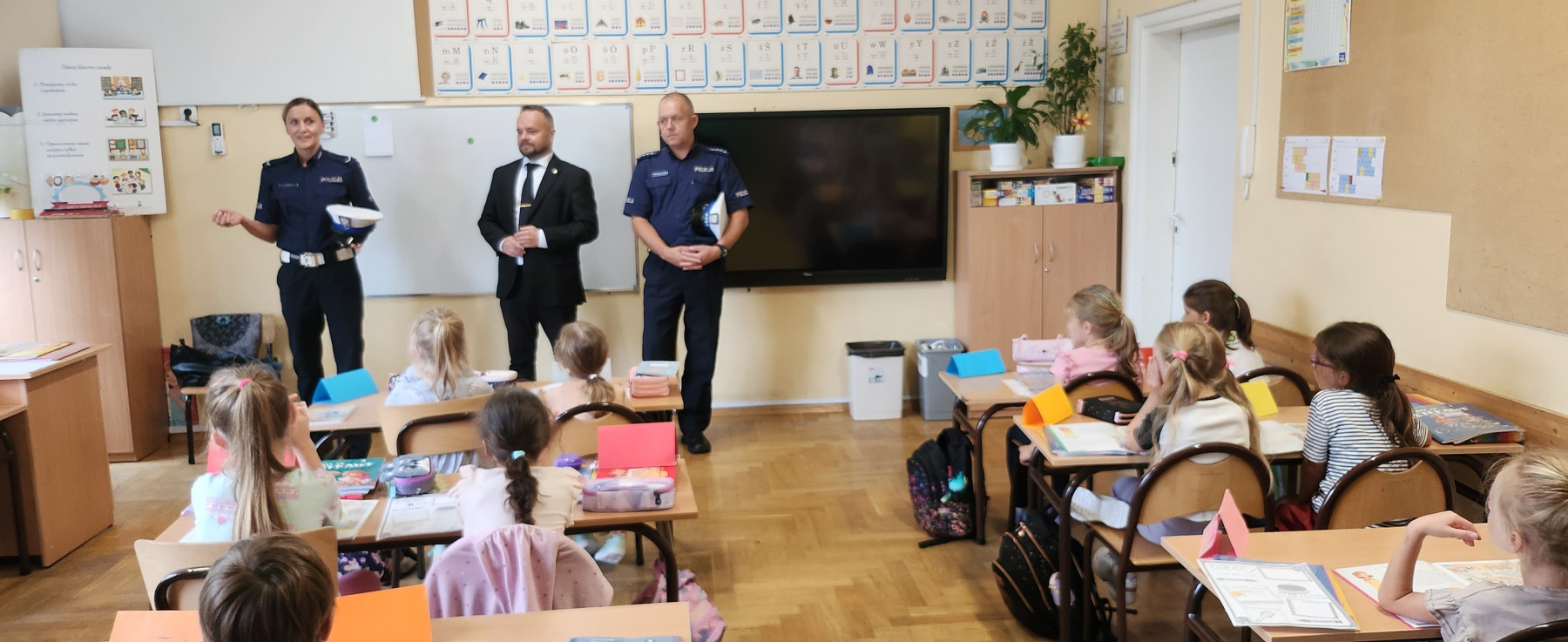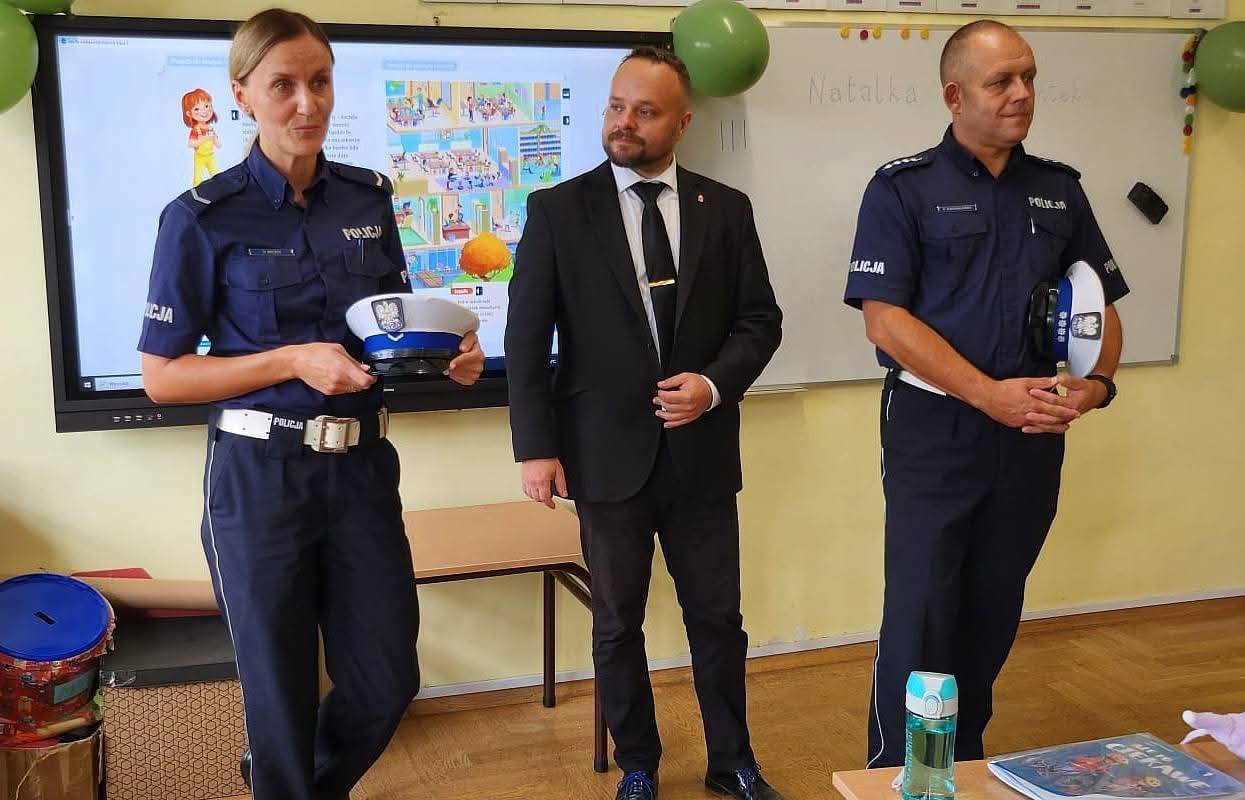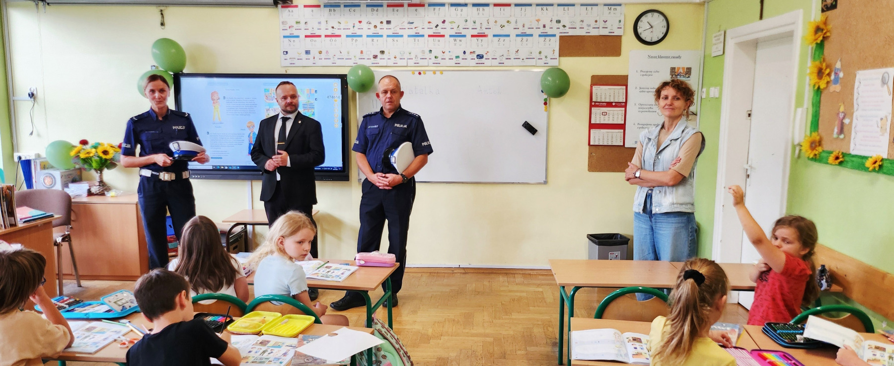 W ramach ogólnopolskiej akcji „Bezpieczna Droga do Szkoły” w naszej szkole odbyło się wyjątkowe spotkanie, którego celem było promowanie bezpieczeństwa dzieci na drodze. Naszymi gośćmi byli funkcjonariusze z Wydziału Ruchu Drogowego Komendy Miejskiej Policji w Krakowie oraz Pan Grzegorz Kompa – Radny Dzielnicy XIII, przedstawiciel Komisji Praworządności i Bezpieczeństwa.