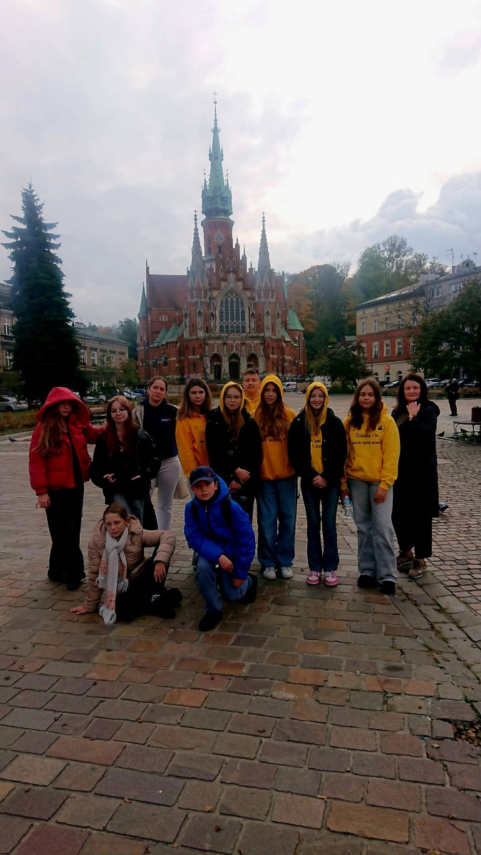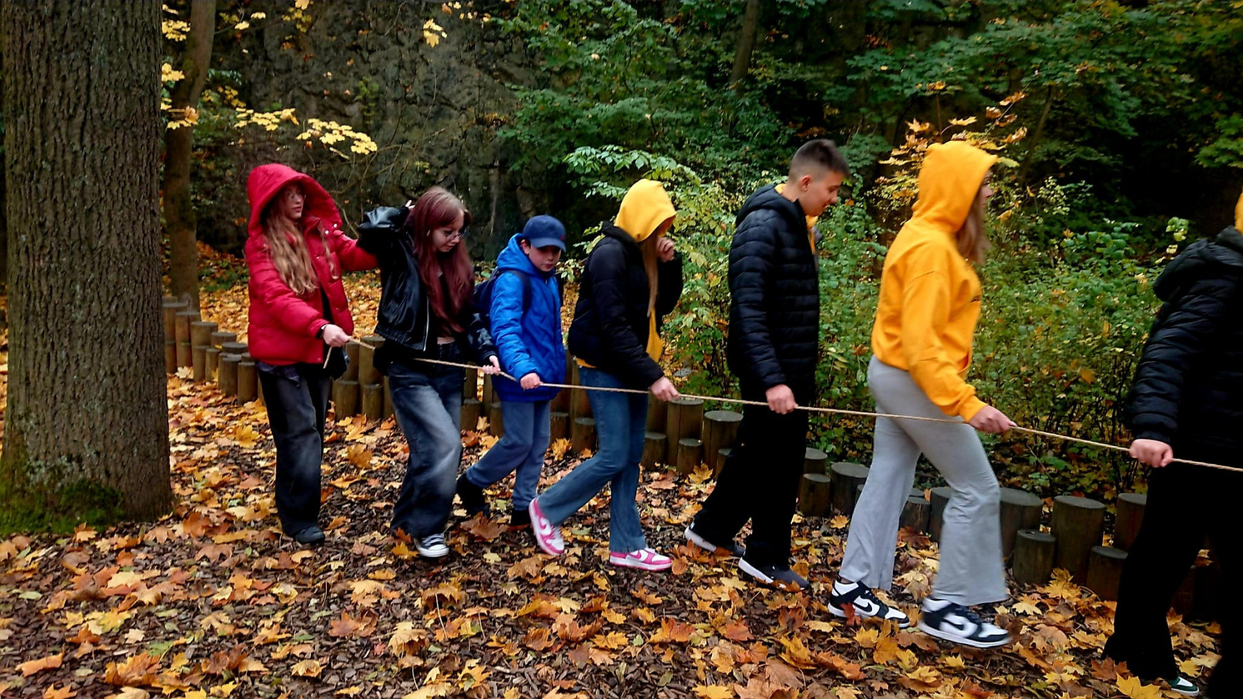 Oprócz warsztatów czekała na nas również niespodzianka – gra terenowa. Jej trasa prowadziła przez zabytkowe i urokliwe miejsca krakowskiego Podgórza. Wyruszyliśmy od księgarni, gdzie szukaliśmy inspiracji i haseł do promowania SBO w naszej szkole. Następnie, w Parku im. Wojciecha Bednarskiego, wykonywaliśmy zadania, które udowodniły, że potrafimy działać zespołowo. Kolejnym punktem były Kolorowe Schody, a finałem – Kładka Bernatka, na której symbolicznie zbudowaliśmy „most współpracy”.