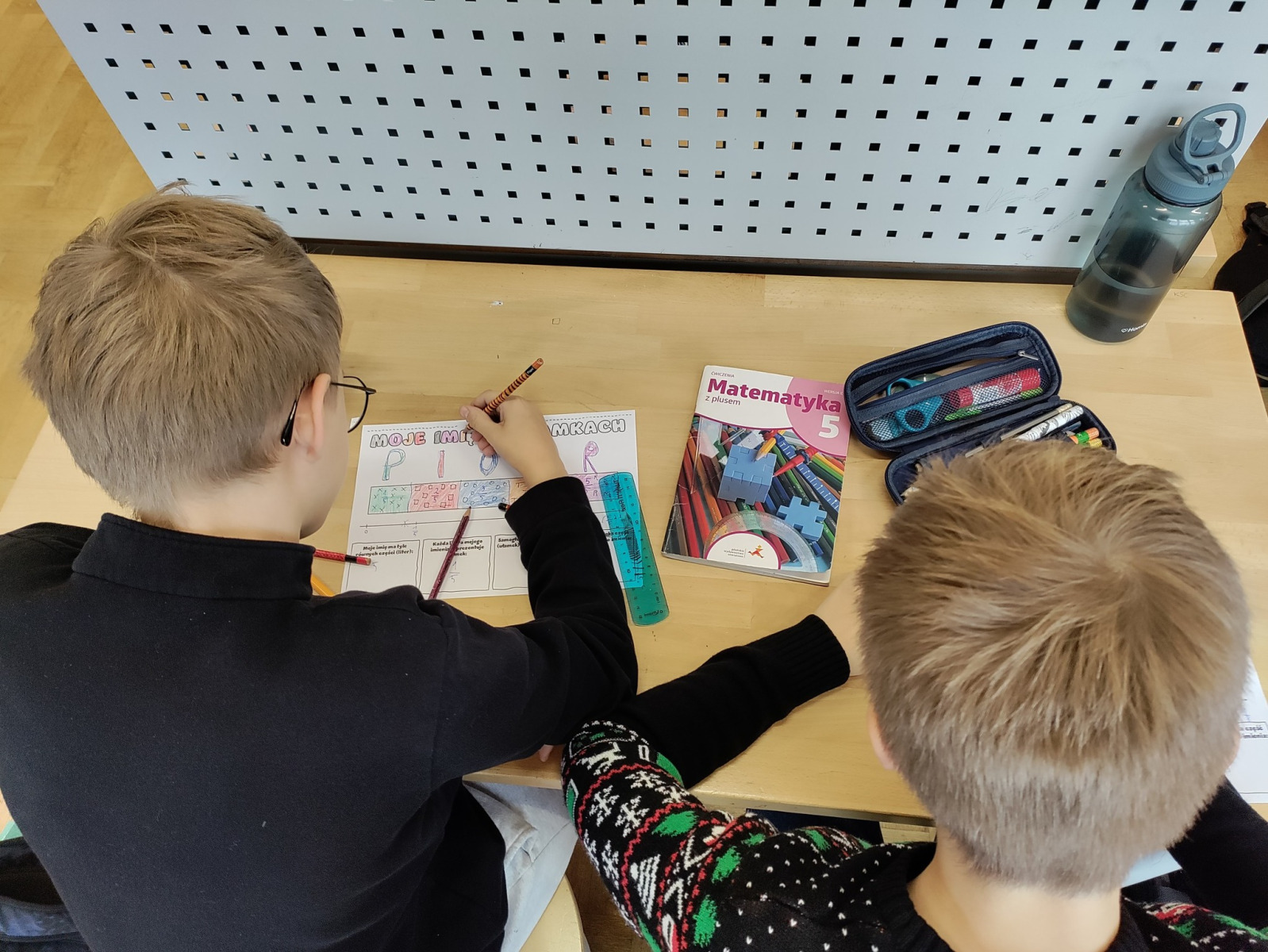 Każdy uczestnik lekcji napisał i ozdobił swoje imię, tworząc barwne, oryginalne prace. Zadanie połączyło matematykę z kreatywnością, dzięki czemu efekty były nie tylko estetyczne, ale i edukacyjne.