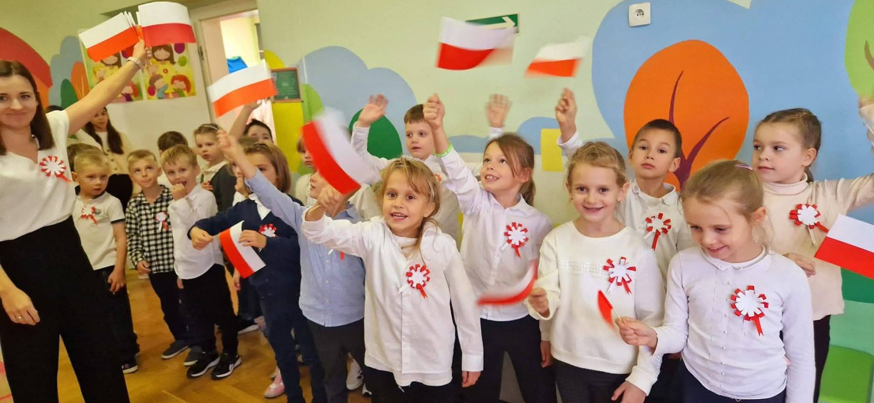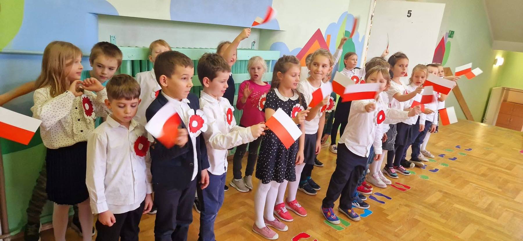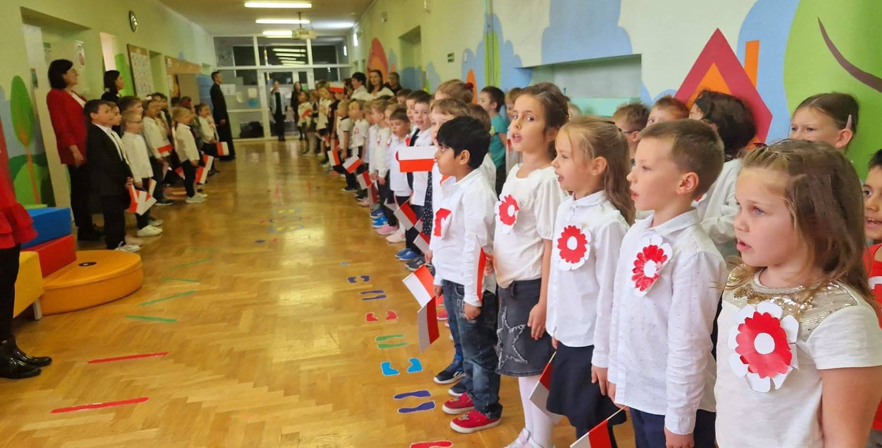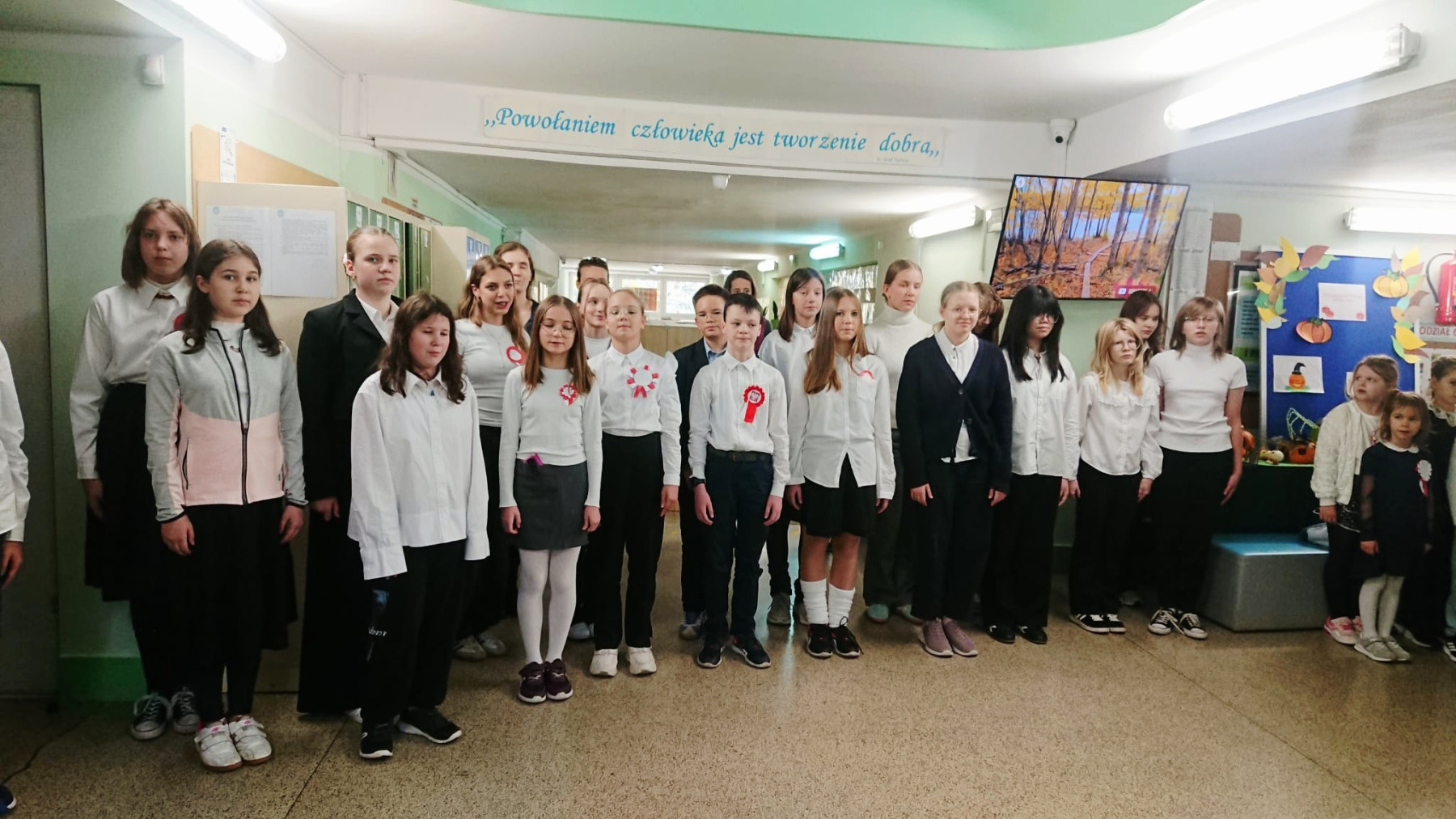 Punktualnie, o symbolicznej godzinie 11:11, przedszkolaki, uczniowie, nauczyciele oraz pracownicy naszej szkoły wspólnie odśpiewali „Mazurka Dąbrowskiego” z okazji 107. rocznicy odzyskania przez Polskę niepodległości.