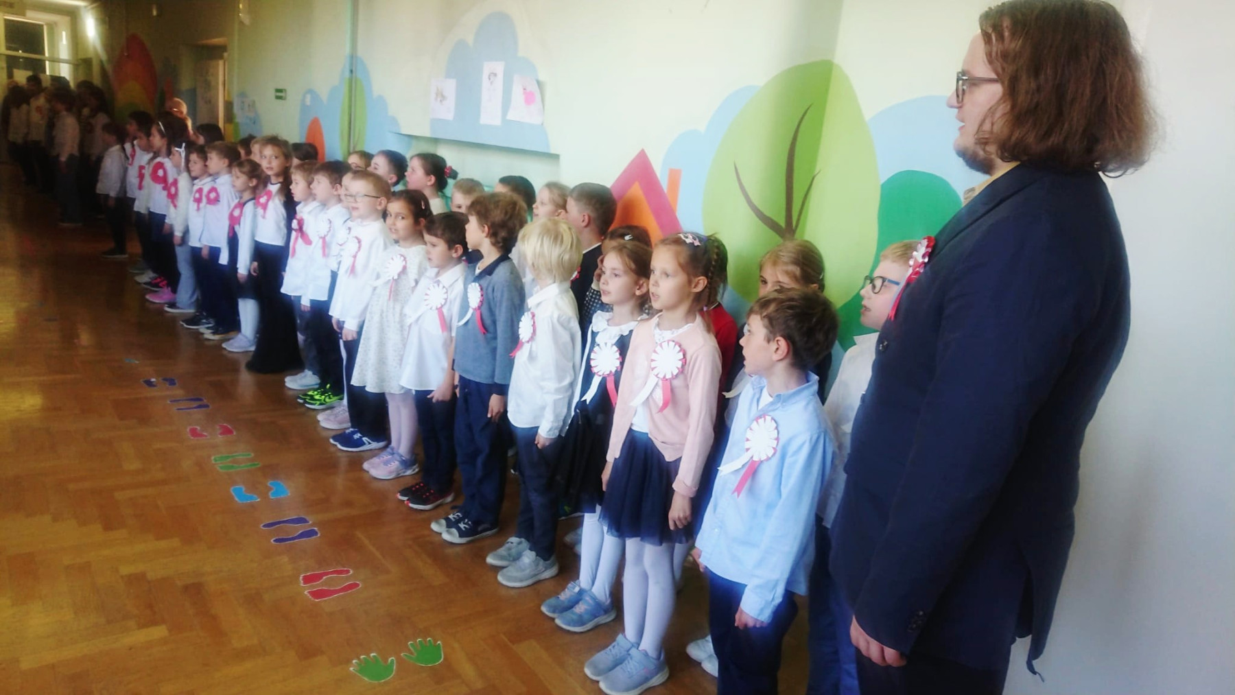 W uroczystych nastrojach, z biało-czerwonymi kotylionami przypiętymi do ubrań, po raz ósmy włączyliśmy się w ogólnopolską akcję #SzkołaDoHymnu organizowaną przez Ministerstwo Edukacji Narodowej