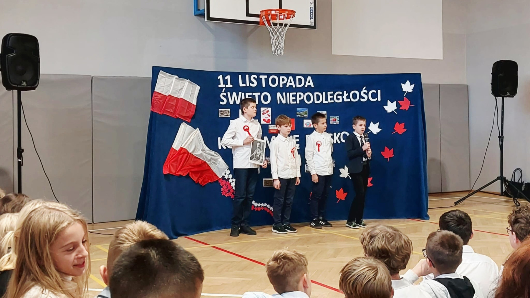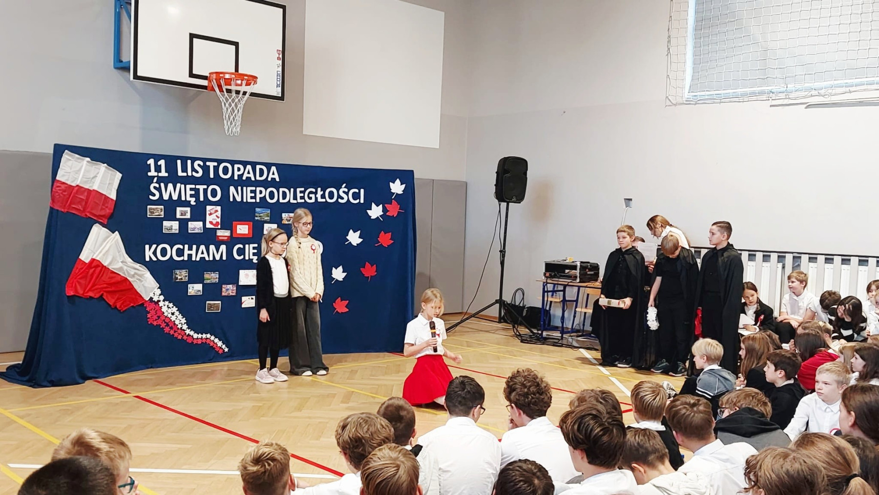 W dniu 6 listopada 2025 r. odbył się w naszej szkole uroczysty apel z okazji Narodowego Święta Niepodległości, pt. „Kocham Cię, Polsko!”. Uczniowie klas 4a, 4b i 4c wraz z wychowawcami z ogromnym zaangażowaniem, sercem i poczuciem patriotyzmu przygotowali niezwykle wzruszające przedstawienie, w którym zabrzmiały piękne wiersze i pieśni przypominające o drodze Polaków do wolności. Nie zabrakło również symbolicznych gestów miłości do Ojczyzny i refleksji nad wartością niepodległości.