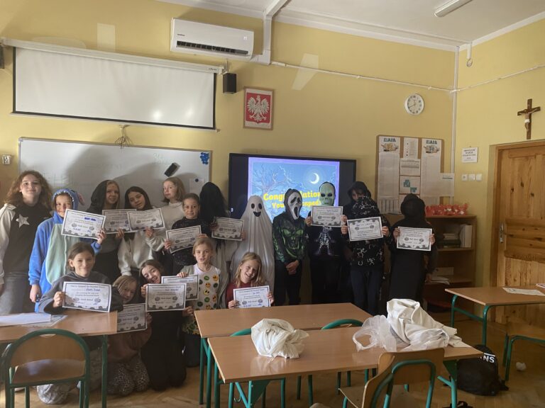Z okazji Halloween uczniowie wzięli udział w wyjątkowej lekcji w klimacie tajemnic i magii! Podczas zajęć rozwiązywali halloweenowe zagadki, które prowadziły ich przez emocjonujący escape room. Wszyscy wykazali się sprytem, współpracą i świetnym humorem!Nie zabrakło też fantastycznych strojów – po korytarzach przechadzały się czarownice, duchy, szkielety i inne niezwykłe postacie. Na zakończenie każdy uczestnik otrzymał certyfikat ukończenia Halloween Escape Room, a uśmiechy na twarzach były najlepszym dowodem, […]