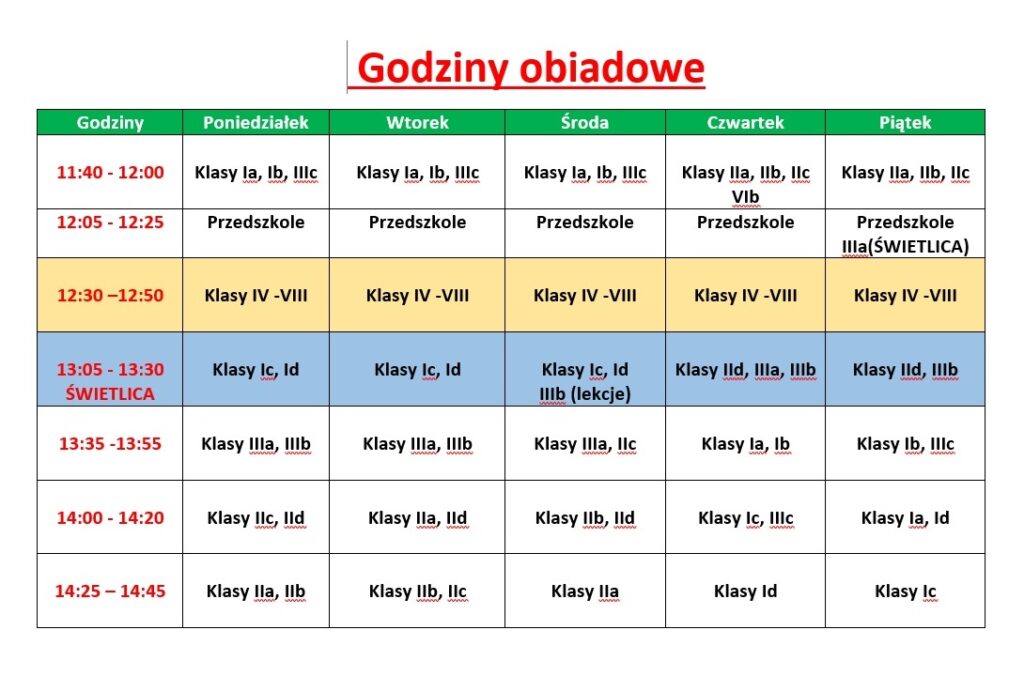 poniżej znajdziecie harmonogram obiadów dla poszczególnych klas oraz jadłospis na najbliższe dni. Życzymy smacznego i miłej atmosfery przy stole!
